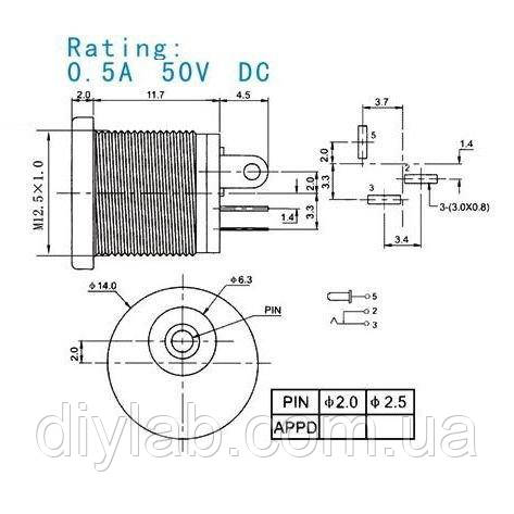 Роз'єм живлення 5,5х2,1мм для кріплення в корпус