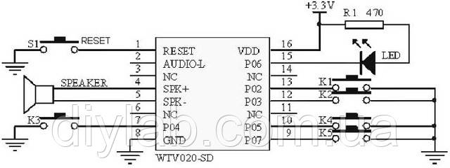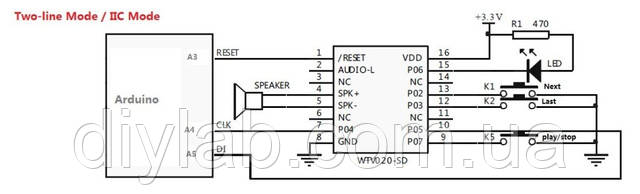 - PWM вихід для прямого підключення динаміка з вихідною потужністю 0.25 / 0.5Вт