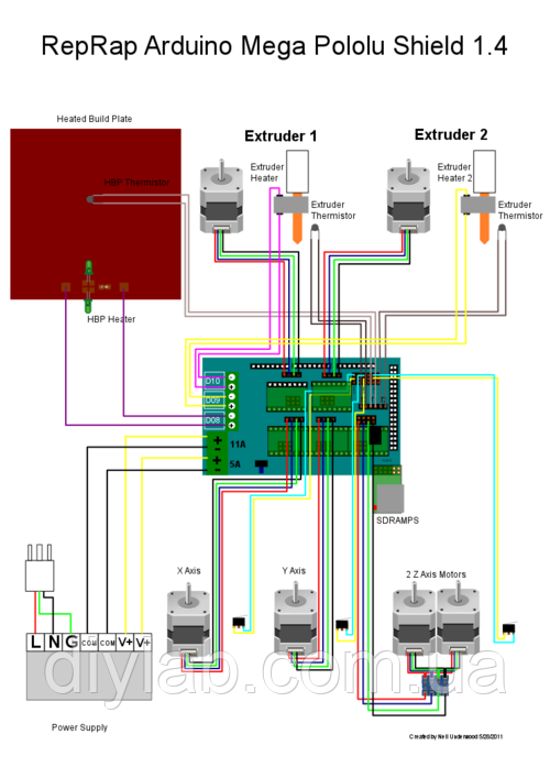 Модуль RAMPS 1.4 (RepRap Arduino Mega Pololu Shield), являється платою расширення під Arduino Mega для 3D принтера RepRap.